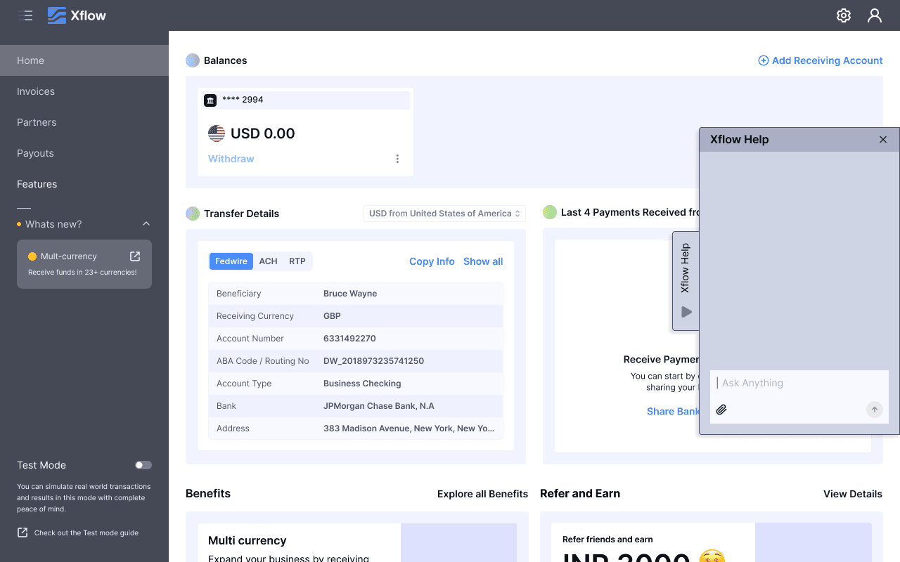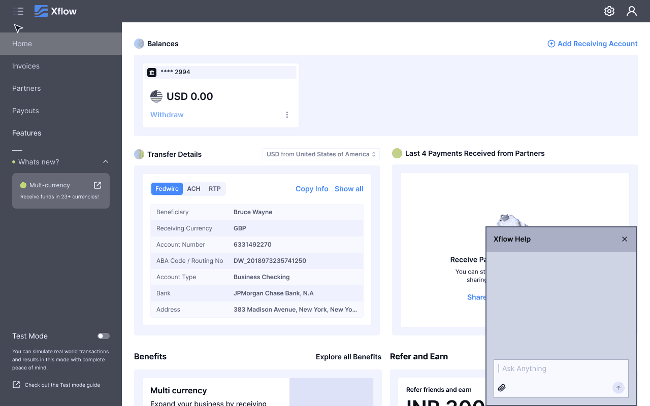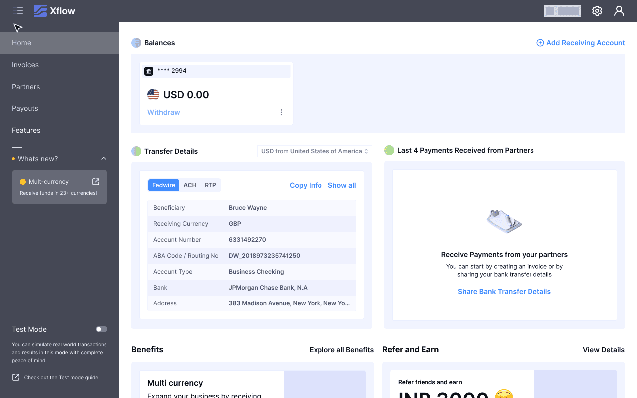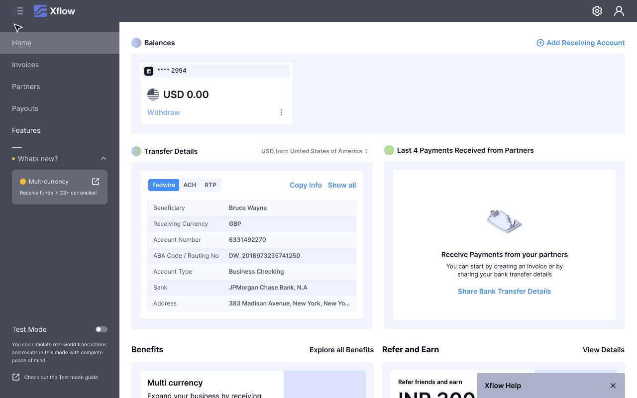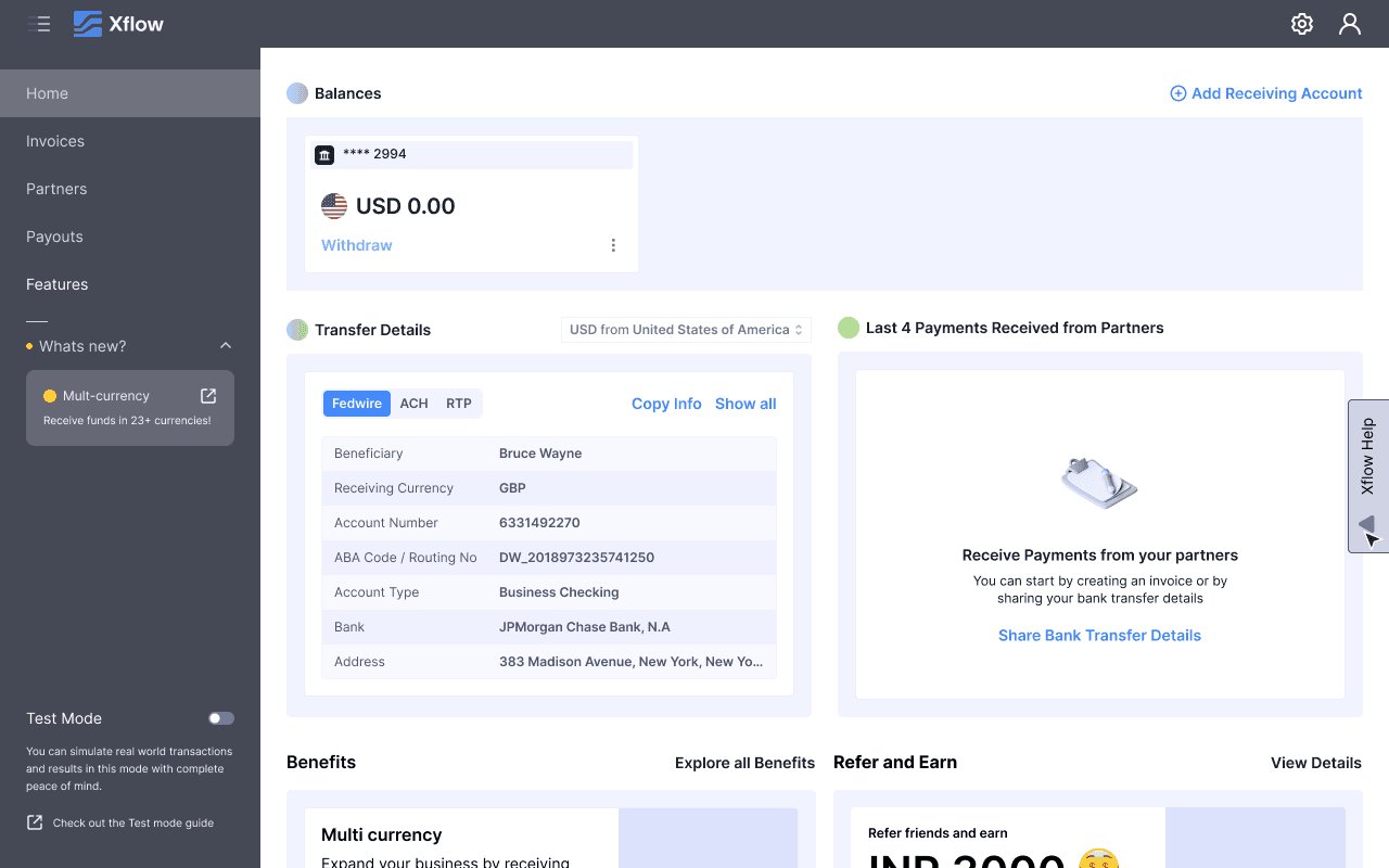Xflow is a cross-border payments platform that enables B2B businesses, freelancers, IT service providers, goods exporters, and funded startups to seamlessly receive and manage international payments.