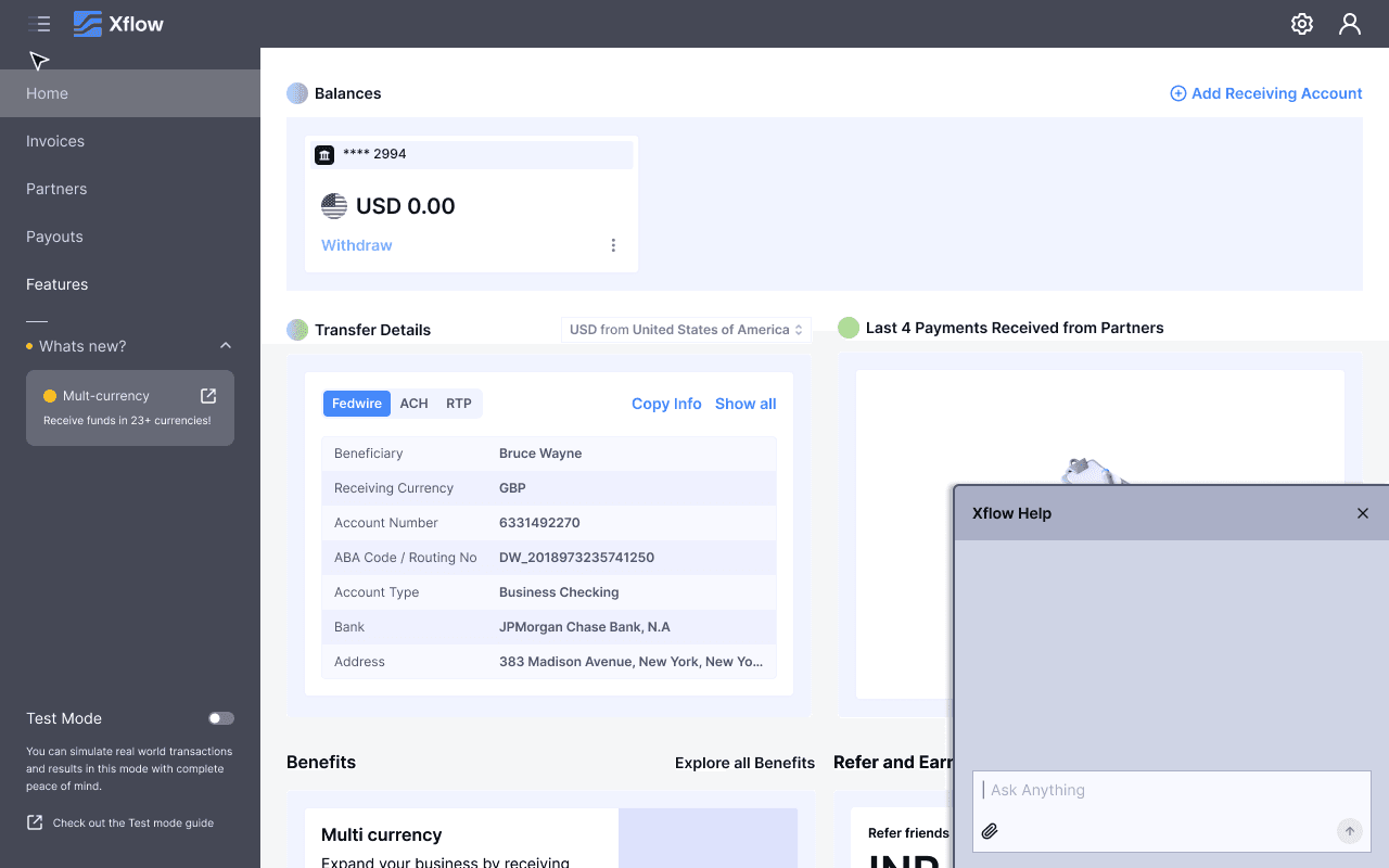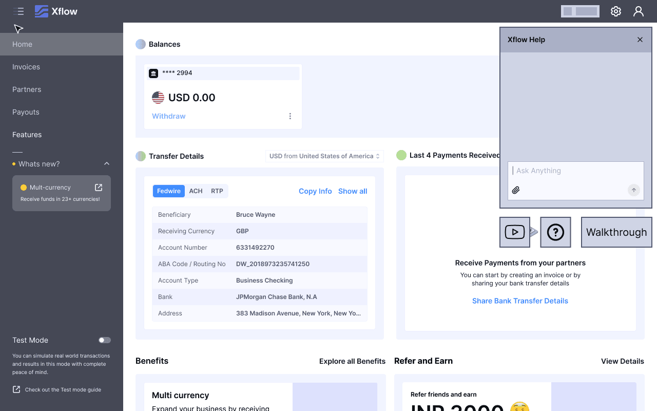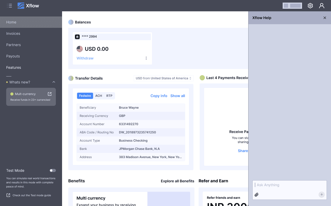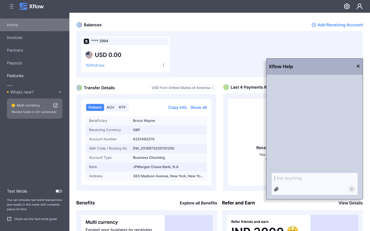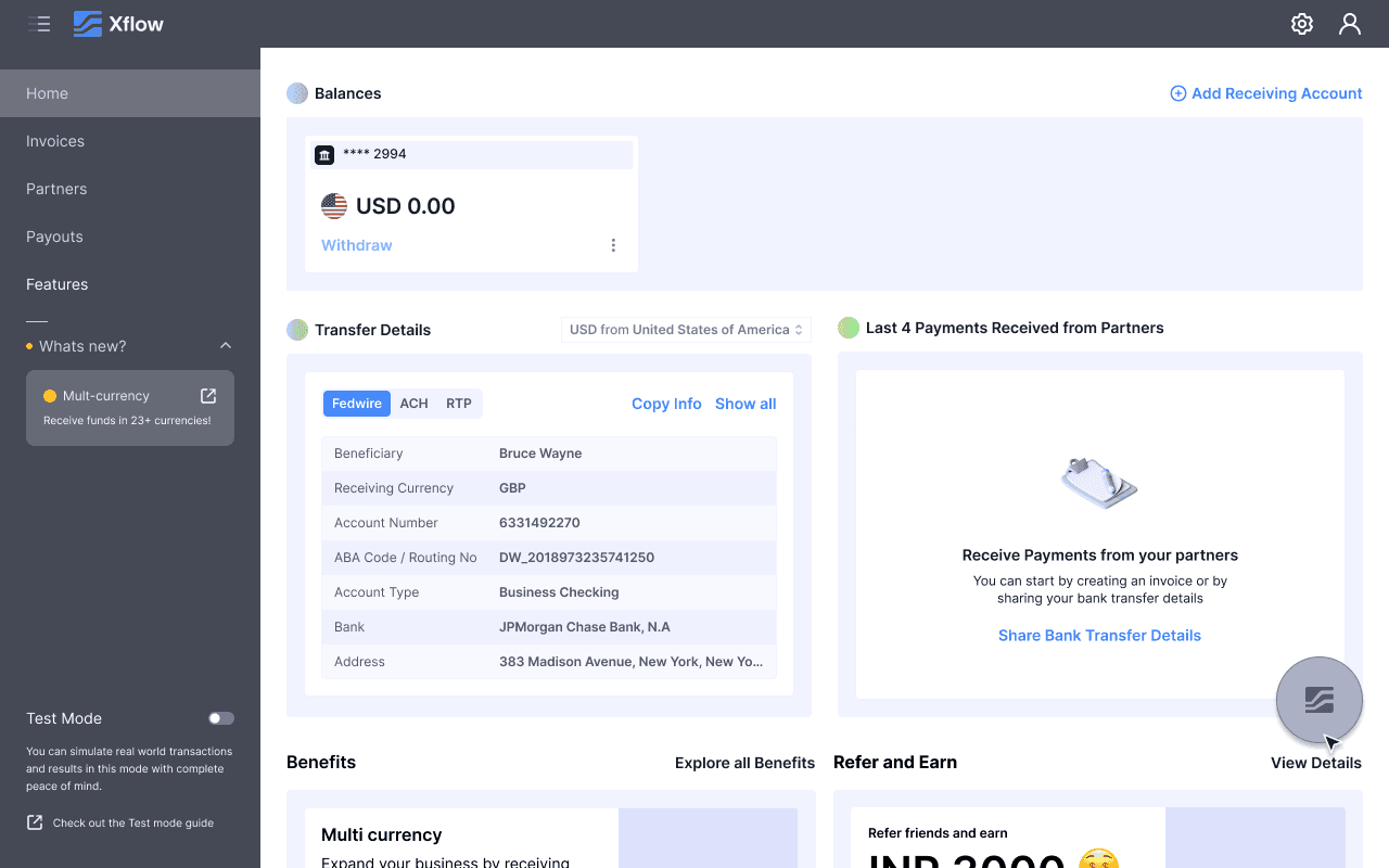 Xflow is a cross-border payments platform that enables B2B businesses, freelancers, IT service providers, goods exporters, and funded startups to seamlessly receive and manage international payments.
