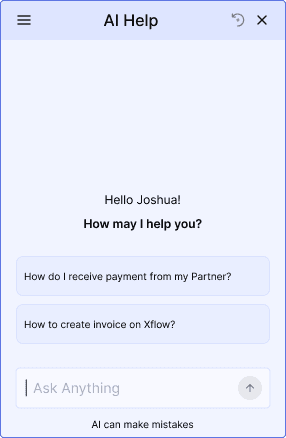 The project was to design a user friendly AI Help Experience on the Xflow Dashboard. This was designed to provide help to the users while using the Xflow Dashboard and during critical flows like money movement and Onboarding.